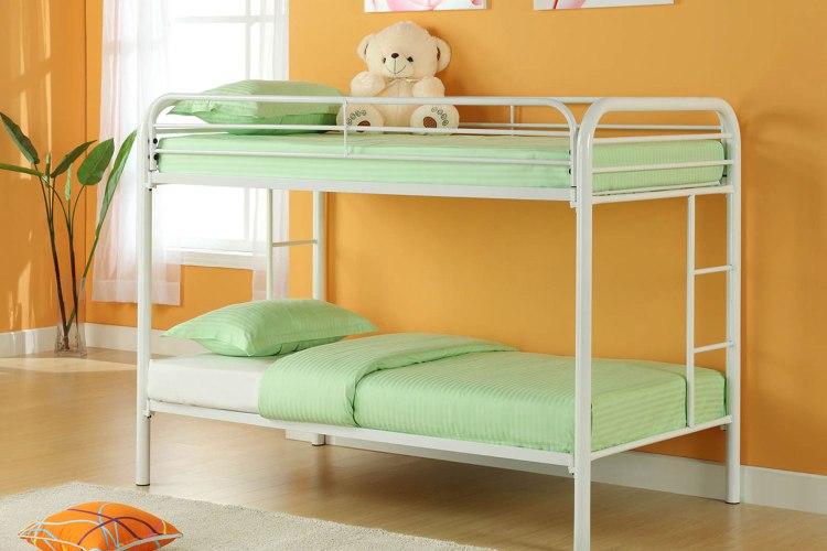 Twin Metal Bunk Bed with blue pillow top 8″ mattresses included