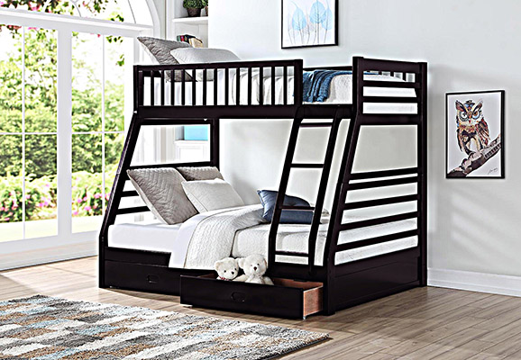 T/F bunkbed with drawers and blue pillow top 8″ mattresses included